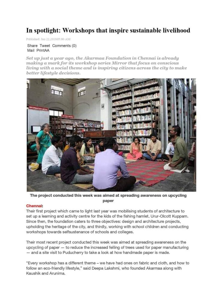 Akarmaa interacts and shares practices from our journey through interactions in the form of workshops and seminars. Attributing to Akarmaa’s belief in learning by doing, multiple initiatives and collaborations are possible.