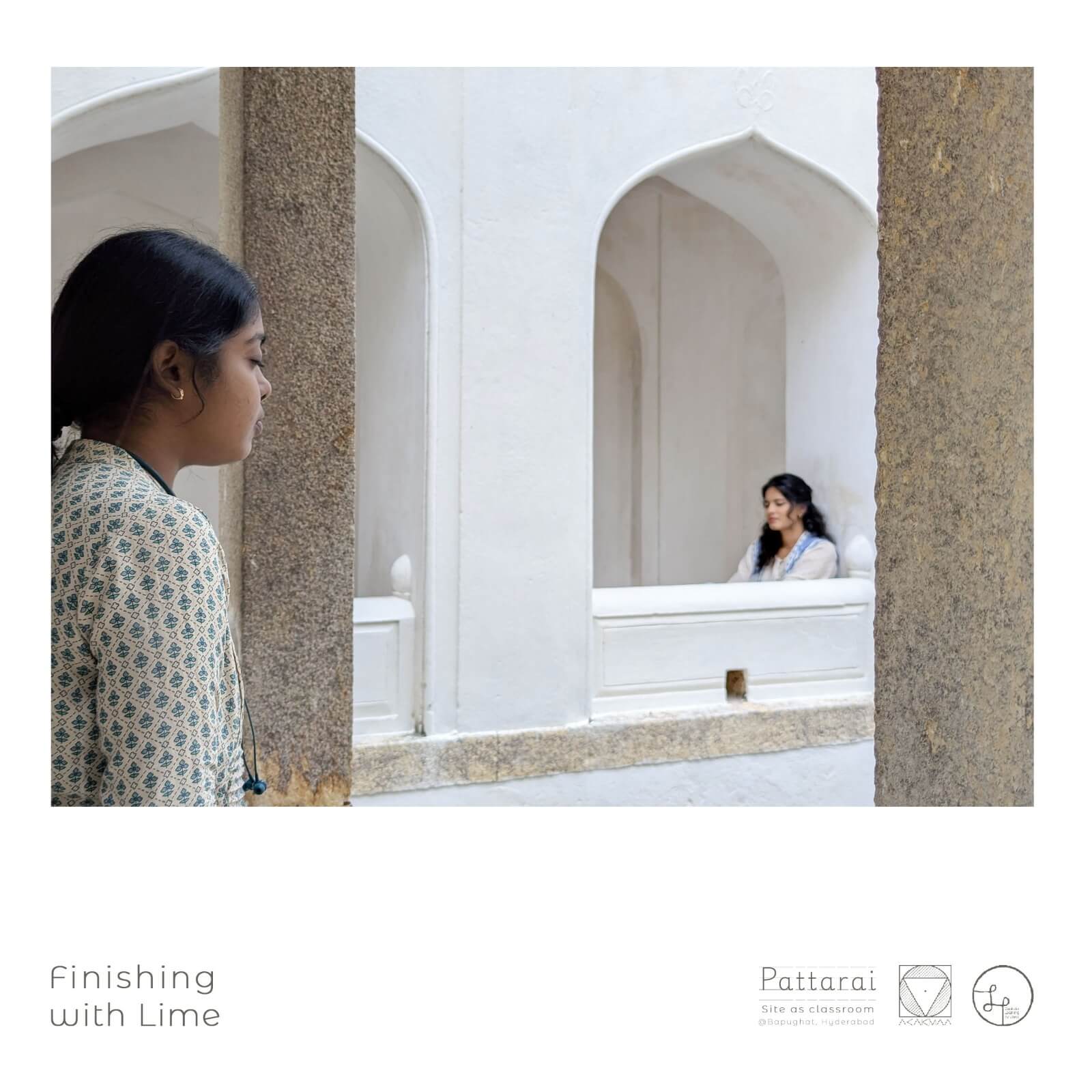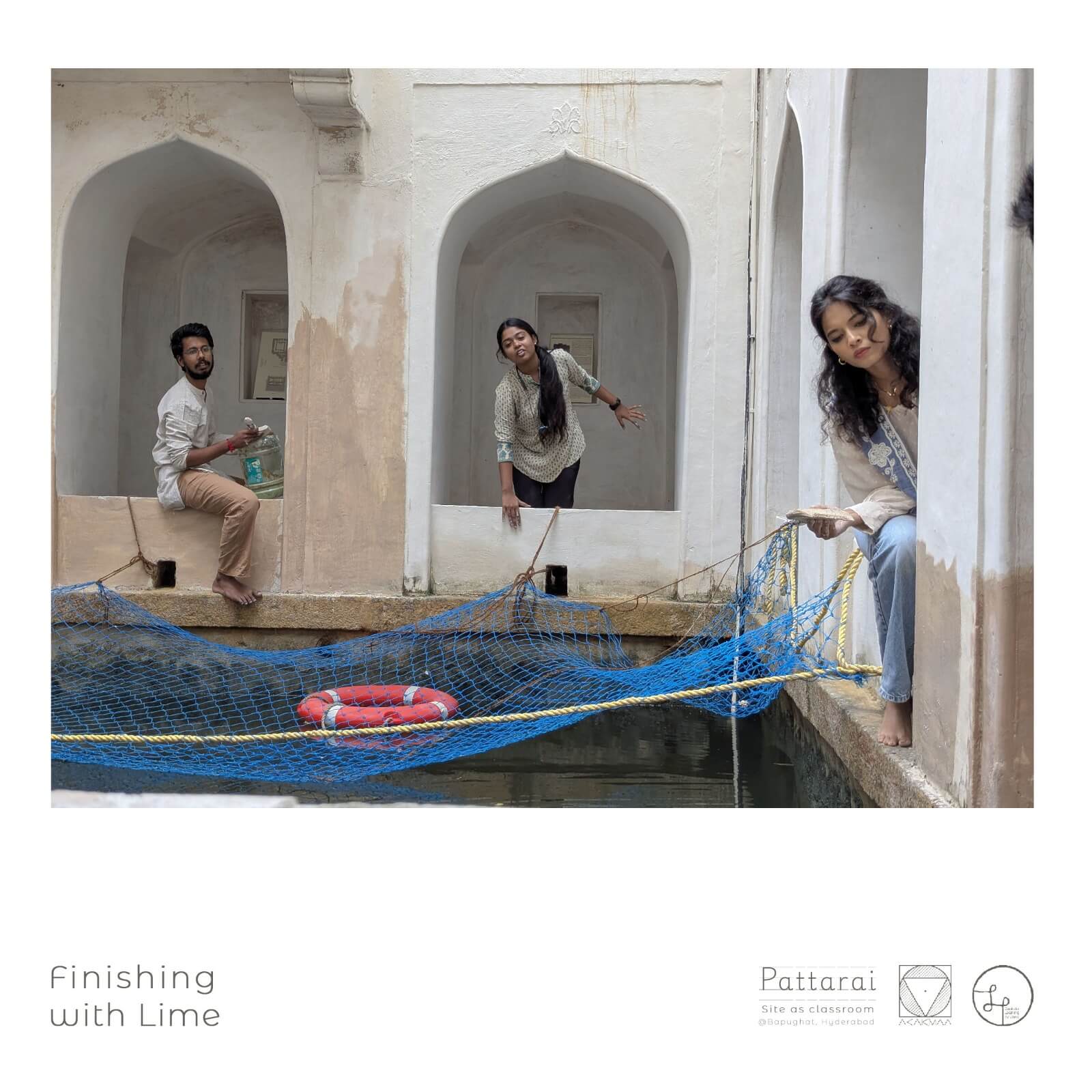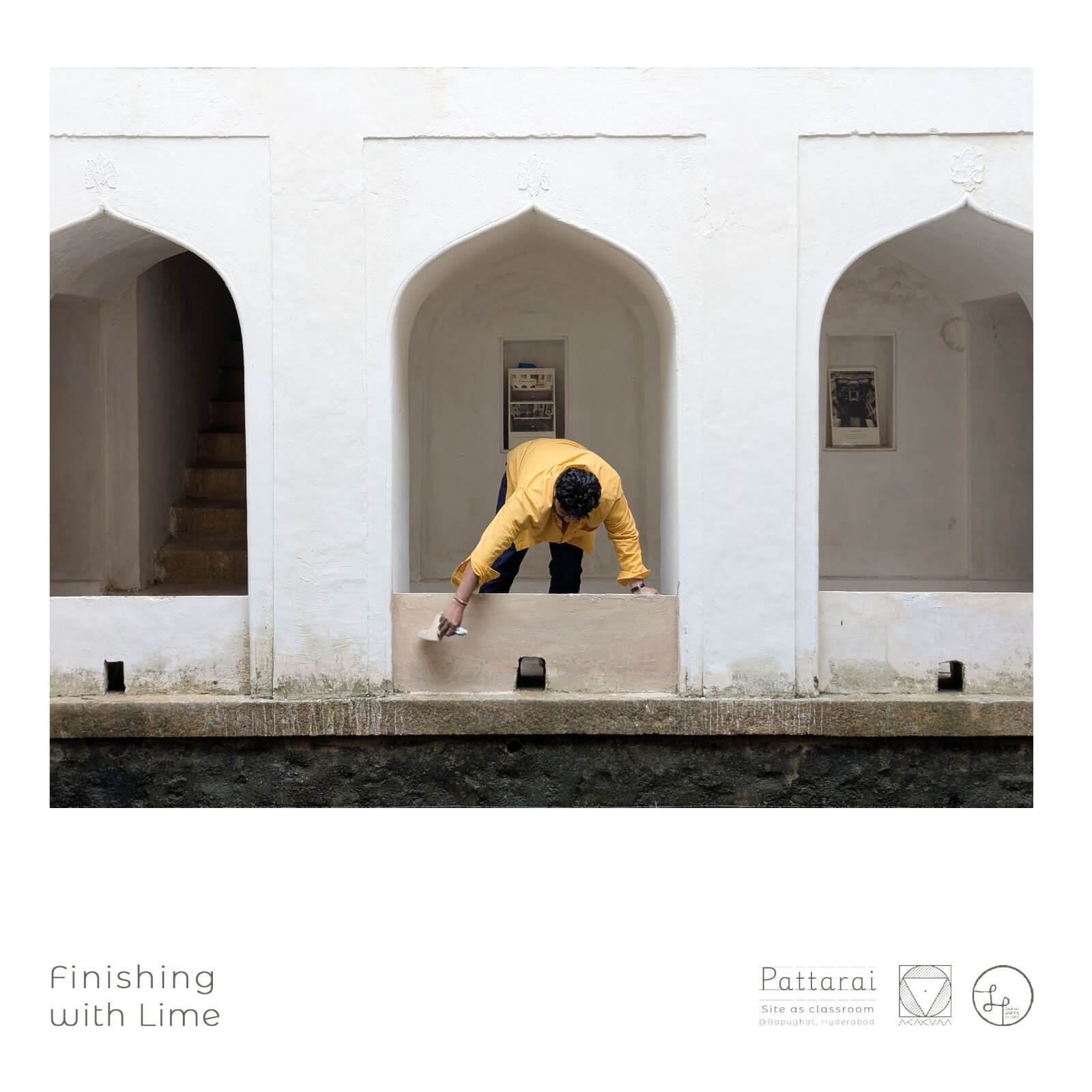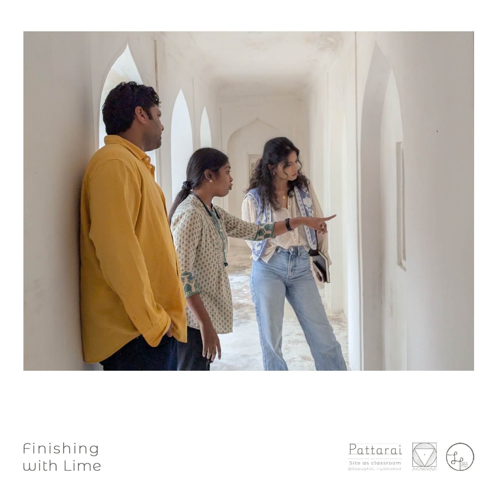 The process of using lime as a final coat was discussed. The participants witnessed the mixing of slaked lime with other adhesive materials in their respective proportions. “It’s very interesting to see how natural material like kadukkai can add such pigment to the lime,” said one of the participants.