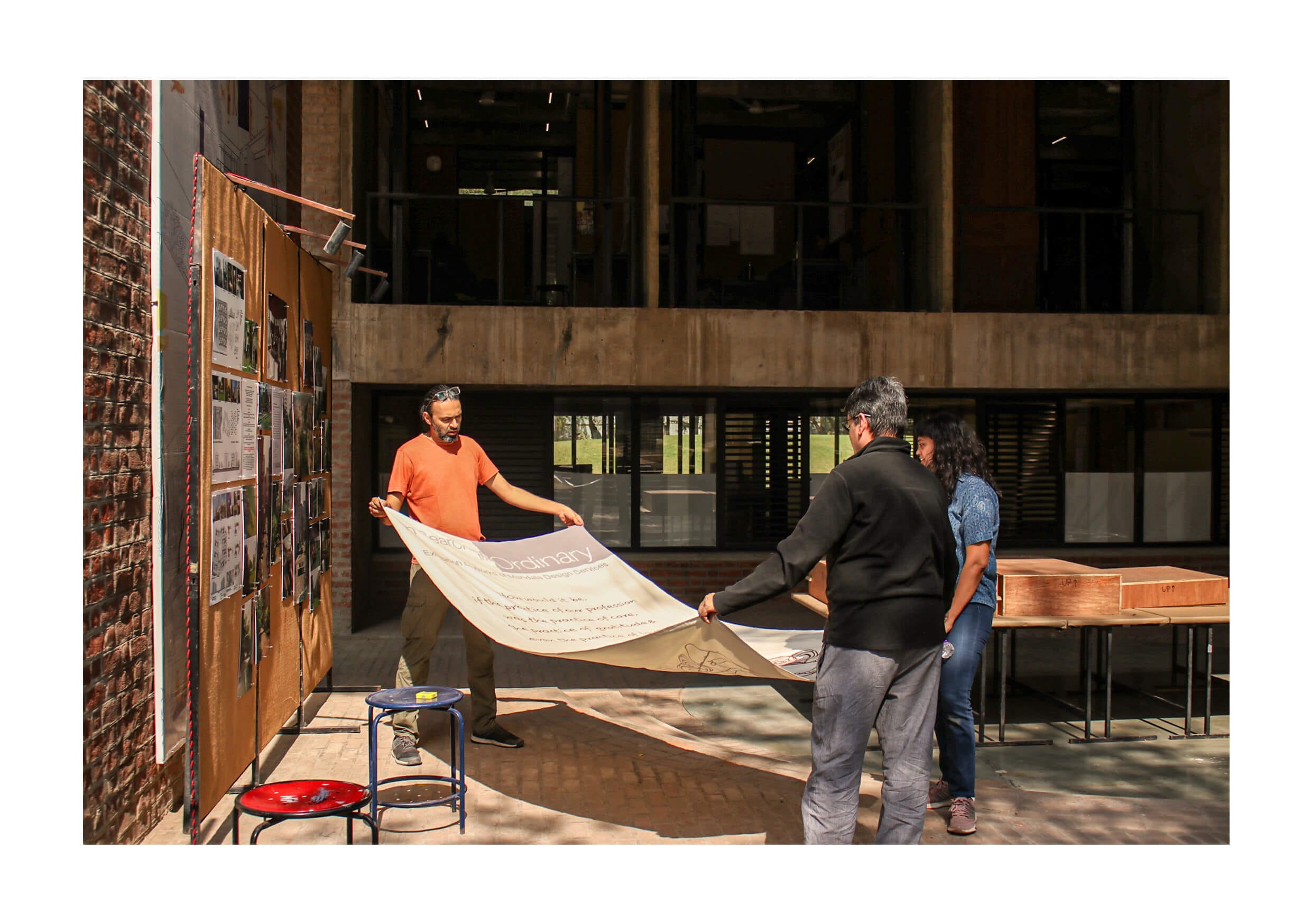 In one of the conversations while preparing for the event, Karthikeya Chhaya mentioned that the exhibition of Mandala Design Services in some form is a ‘Homecoming for the boys’. And we could not agree more with him. The thought immediately resonated with ‘Architecture need to do no more, nor should it ever do less, than assist man’s homecoming’. We are grateful to this place, for having assisted in our boys’ homecoming. Prof. Neelkanth Chhaya, Prof. Sohan Nilkanth, and Prof. Kallol Joshi were called upon on stage. Prof. Sachin Soni, from CEPT University, introduced Mandala Design Services and it’s founding partners. He also introduced Karthikeya Sarabhai and invited him to talk about the exhibition ‘In Search of the Ordinary’ and declare it open.
