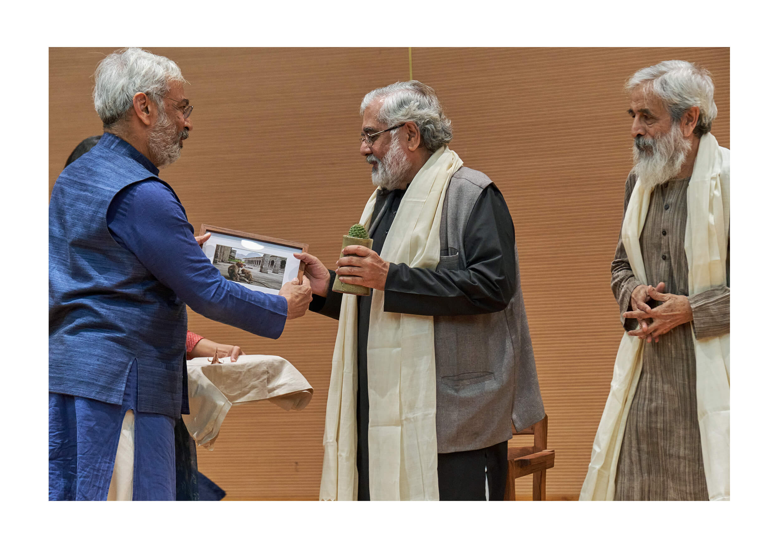 “I would like to take a few minutes to talk about how the book was made possible. The process of making this book has been a labour of love for more than eighteen months by a hundred young minds, mostly students of architecture and young graduates who have directly worked to make this happen. The process of making this book was a transformative experience for each one of them. There are people who have burst out into tears at the end of each chapter, and there are also people who have silently blushed to look at the screen. With a certain liberty if I may add, there are also people who have worked on the book for a long, started imitating Prof. Chhaya scratching his head and saying, ‘Maybe, we can do it’ with shrugging shoulders. Through all of this, the students became one with Prof. Chhaya, imbibing his words.