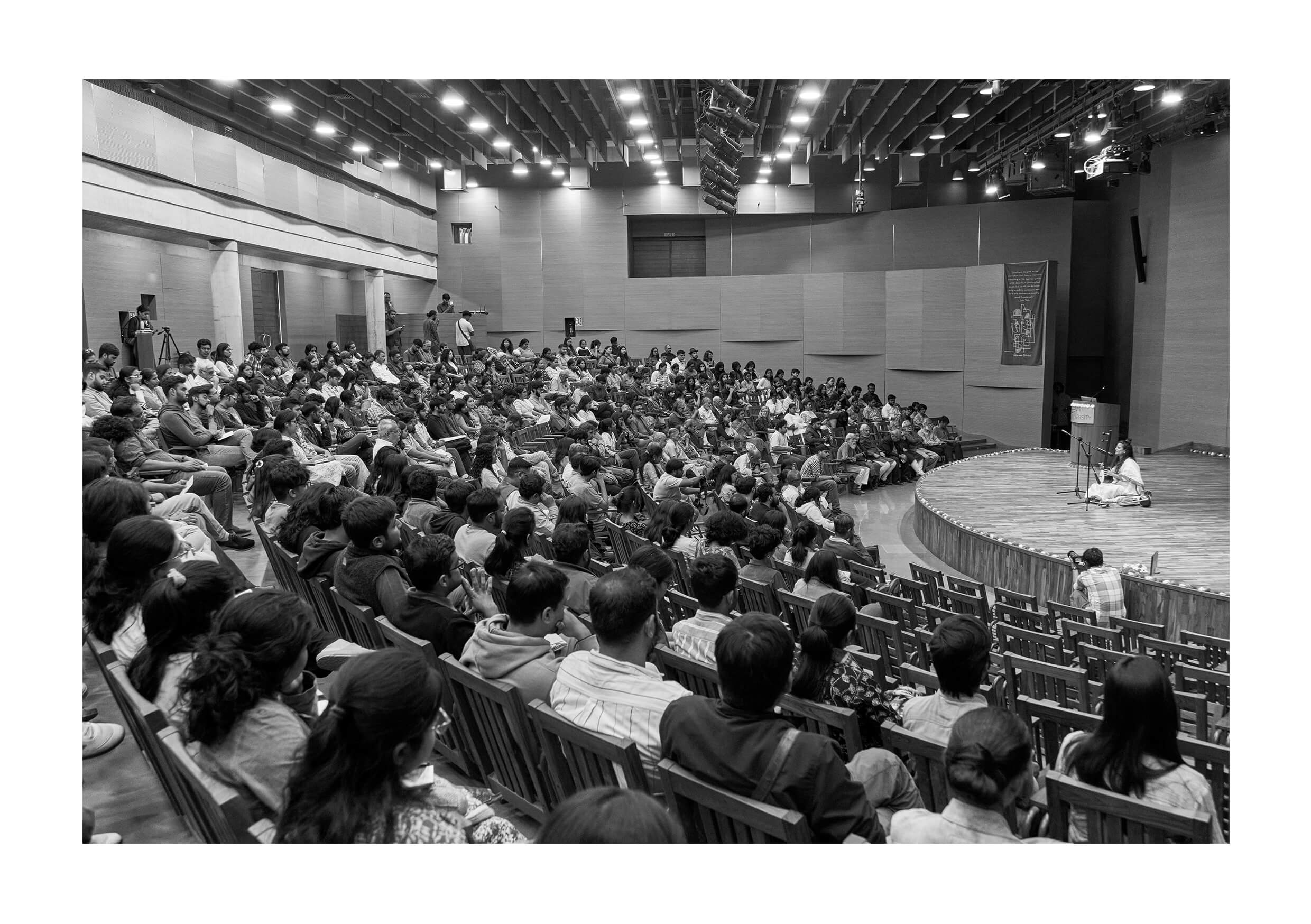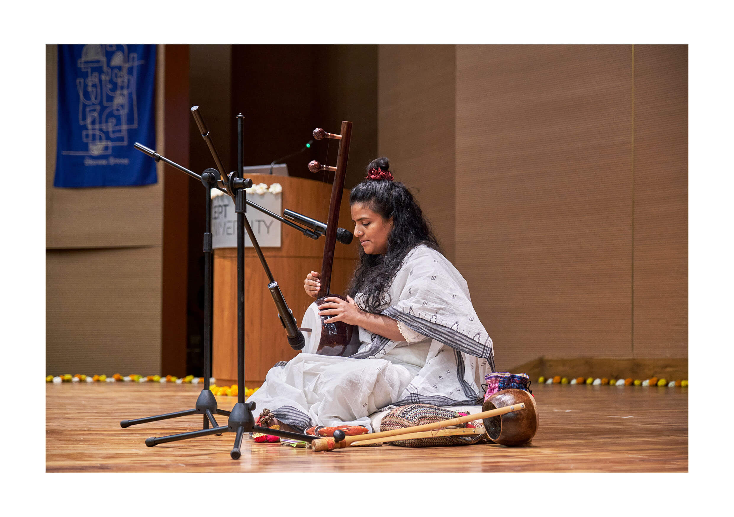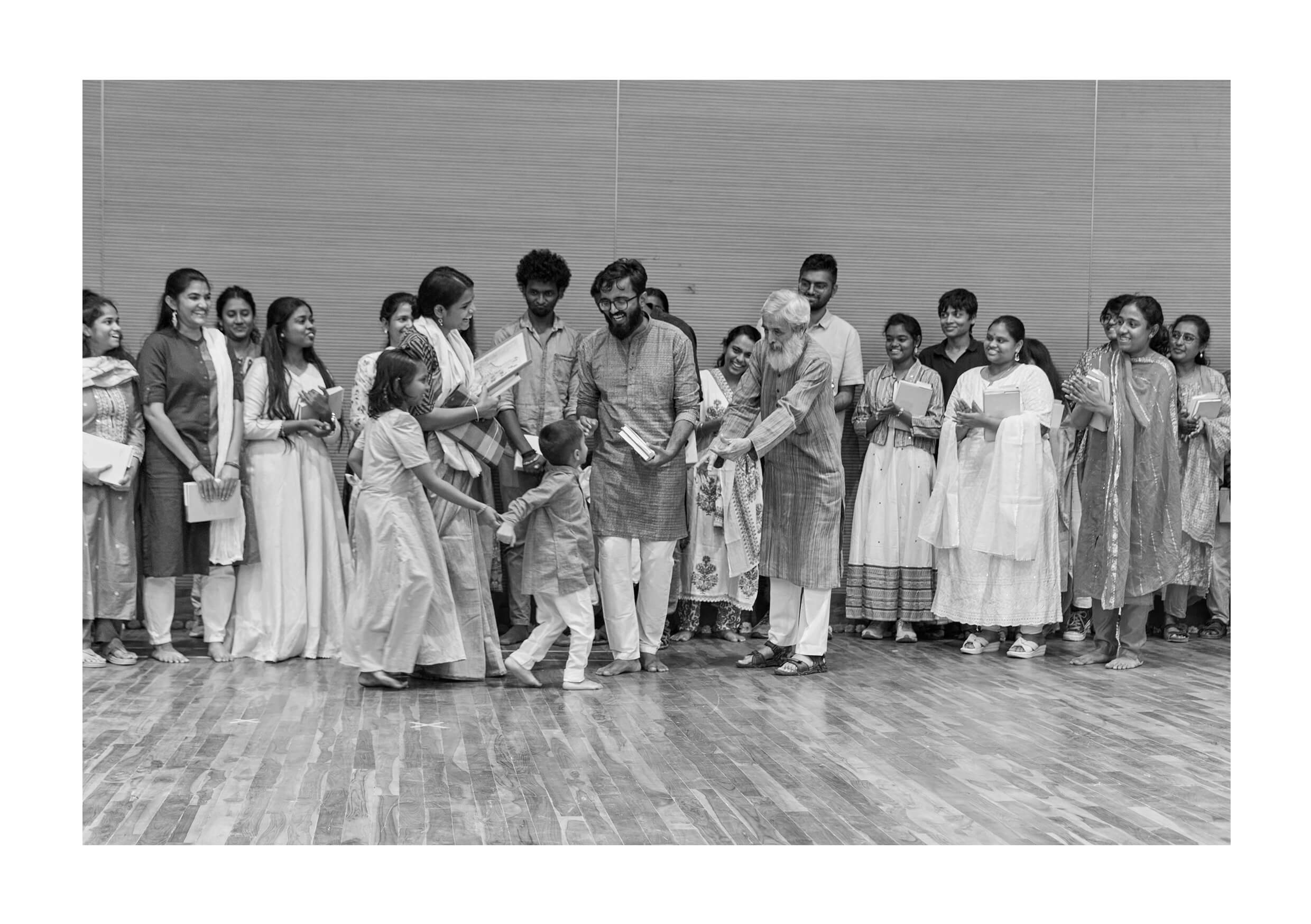 Sahajo Sang, an initiative of music through which various lives have been touched, documenting and archiving different folk songs, traditions and folk instruments across India. Founded by Tejashree Ingawala, a disciple of renowned Parvathy Baul, who also has a very unique way of practice, where she heals through prayer fasting and singing, setting the grounding tone for the evening through divine invocation. Her voice echoed in the hall as well in everyone’s hearts. Prof. Tridip Suhrud, Provost of CEPT University felicitated her.