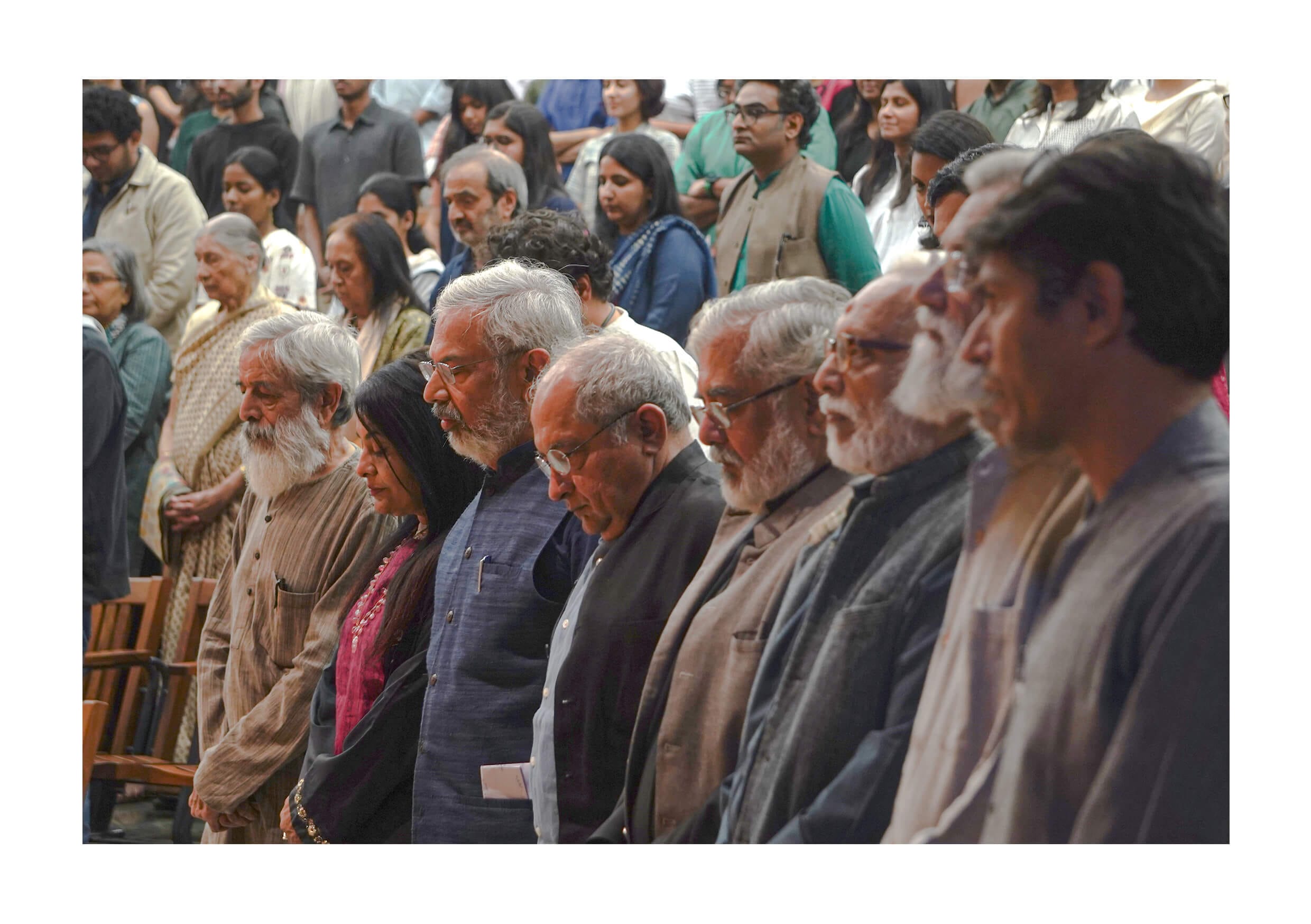 “Too much has already been said. I won’t take a lot of your time but I must say that we are really touched by what all these people have done. But also touched by the presence of all our friends here – friends, colleagues, teachers, students, everybody and it’s wonderful. And I think what it tells also is that there was a certain moment of Ahmedabad which we all lived through and it’s that moment of Ahmedabad. If I think of the time when architecture, design, dance all these were being talked about at the level of depth in Ahmedabad, painting too and literature. This is something that in Ahmedabad becoming a world-class city is becoming less deep. And I think this is the thing that we need to bring back. All that we learnt is from being in Ahmedabad. If we hadn’t been in Ahmedabad we would not have learnt the same things. And I think this is something which we really have to look at. Everybody who thought of us, starting from Vikram Sarabhai, Kasturibhai Lalbhai, up to the people who were my friends, were there. I think it is that spirit which needs to be taken forward by these people (pointing at people involved in the book). Maybe in Thiruvannamalai, maybe in the south, maybe no longer in Ahmedabad. Wherever it is, I think that would be the thing and I hope that this happens and becomes something that becomes a movement in which all of us join. Thank you very much”.